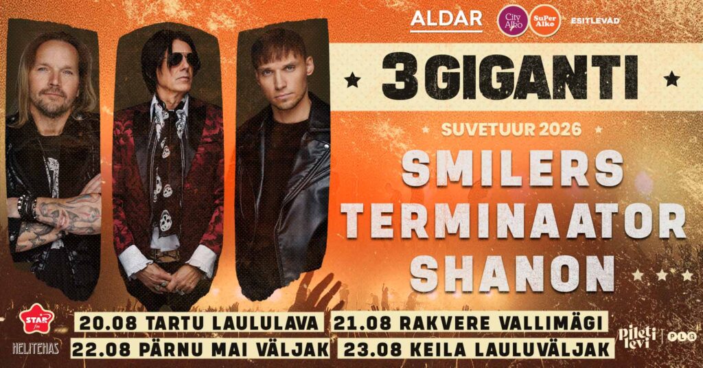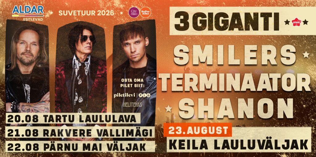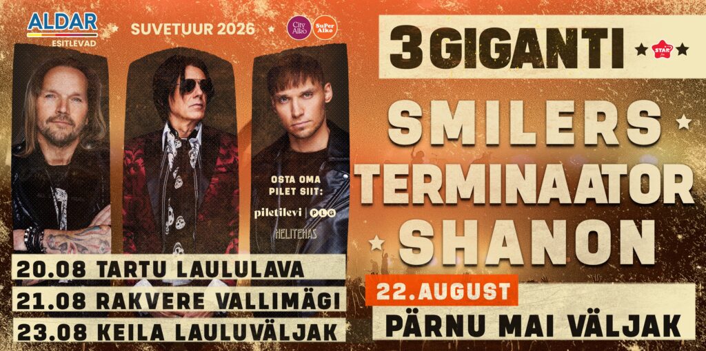 Aldar & City Alko esitlevad: 22.August PÄRNU // 3 GIGANTI TUUR 2026 – Terminaator, Smilers, Shanon LIVE Valmistu aasta live tuuriks, millest räägitakse veel kaua – Terminaator, Smilers ja Shanon panevad seljad kokku ja tulevad üle Eesti vägevale tuurile! Kolm Eesti rocki giganti, üks lava, üks õhtu – neljas linnas. Seda peab oma silmaga nägema! […]